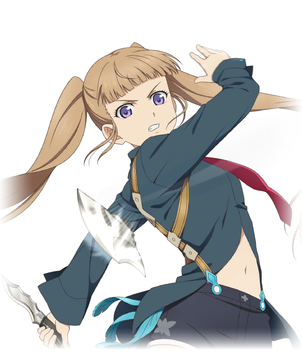 ヴィクトルの娘であり、ルドガーの相棒。そんな幼いエルが大人になった彼女の瞳は澄んだ菫色をしている。母、ラル・メル・マータと同じ色――彼女が生まれたのはあり得ないほど歪んだ歴史をたどった世界だった。クルスニクの鍵としての力を持つ彼女は、世界を救うために自らの死を受け入れようとする。しかしそれを防ぎ、希望を繋いでくれたのはルドガーだった。そうして彼女は新たな約束と希望の光を目指し、相棒と共に歩き続ける。